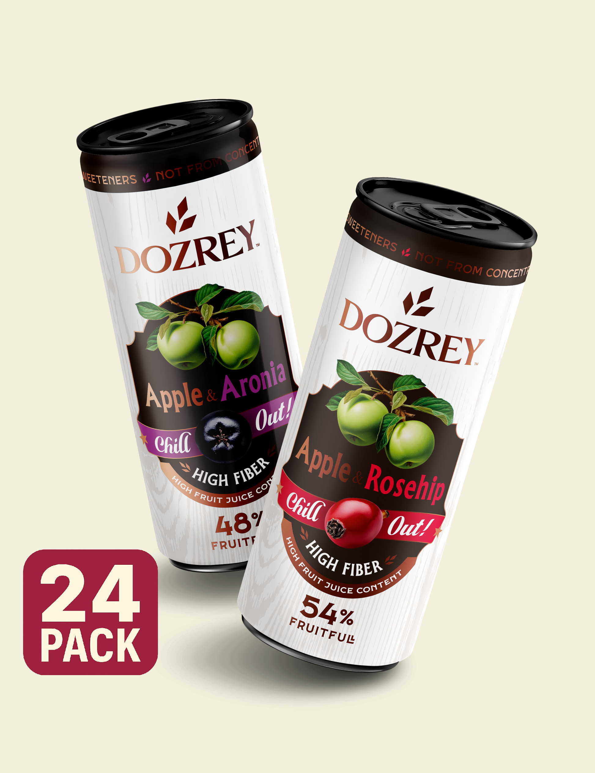 Balenie DOZREY Duo Pack obsahuje obe príchute našich funkčných sýtených nápojov: jablko a arónia, jablko a šípka . Každá z plechoviek sa vyznačuje vysokým obsahom vlákniny a ovocných štiav lisovaných za studena, ktoré nie sú z koncentrátu (NFC), a to bez pridaného cukru, konzervačných látok alebo umelých sladidiel.